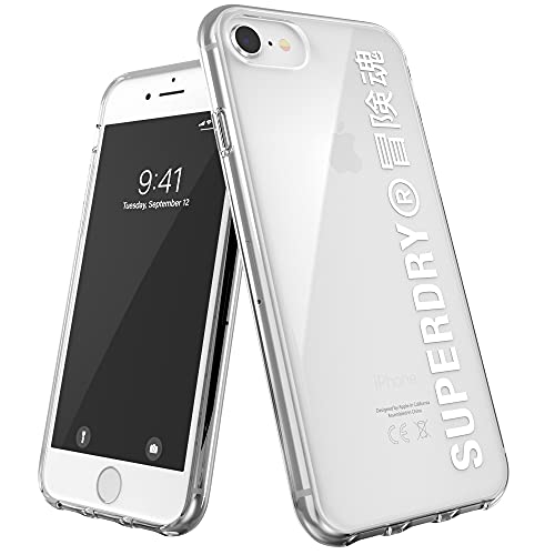 Superdry - Custodia per iPhone 6/6S/7/8/iPhone SE, trasparente con chiusura a scatto, colore: Bianco