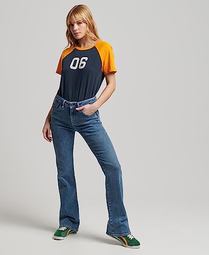 Superdry Mid Rise Slim Flare Pantaloni, Dark Indiaigo Aged, 28W / 33L Donna