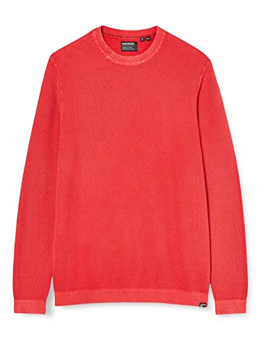 Superdry Garment Dyed Textured Crew Maglia a Maniche Lunghe, Rosso (Washed Grapefruit 3fo), L Uomo