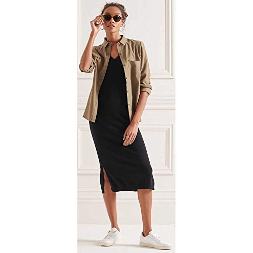Superdry V Neck Knitted Dress Vestito Donna, Nero, Medium