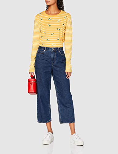 Superdry LS EMB Top Maglia a Maniche Lunghe, Giallo (Yellow Stripe QXL), M (Taglia Produttore:12) Donna