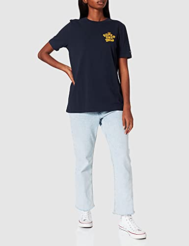 Superdry Script Style col Flock Tee T-Shirt, Deep Navy, Small Donna