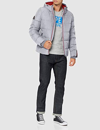 Superdry Sports Puffer Giacca Trapuntata, Marna Grigia/Rosso Rischio, XL Uomo