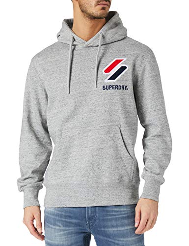 Superdry Sportstyle Applique Hood Felpa con Cappuccio, Grey Slub Grindle, S Uomo