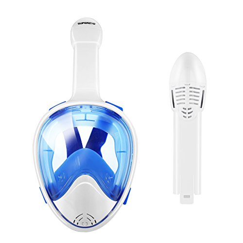 SUPEREYE Snorkel Maschera Pieno facciale Immersioni Snorkeling Mask 180 Panoramic Anti-Fog Respirare Design più Facile di Sicurezza con Visione Action Camera Mount