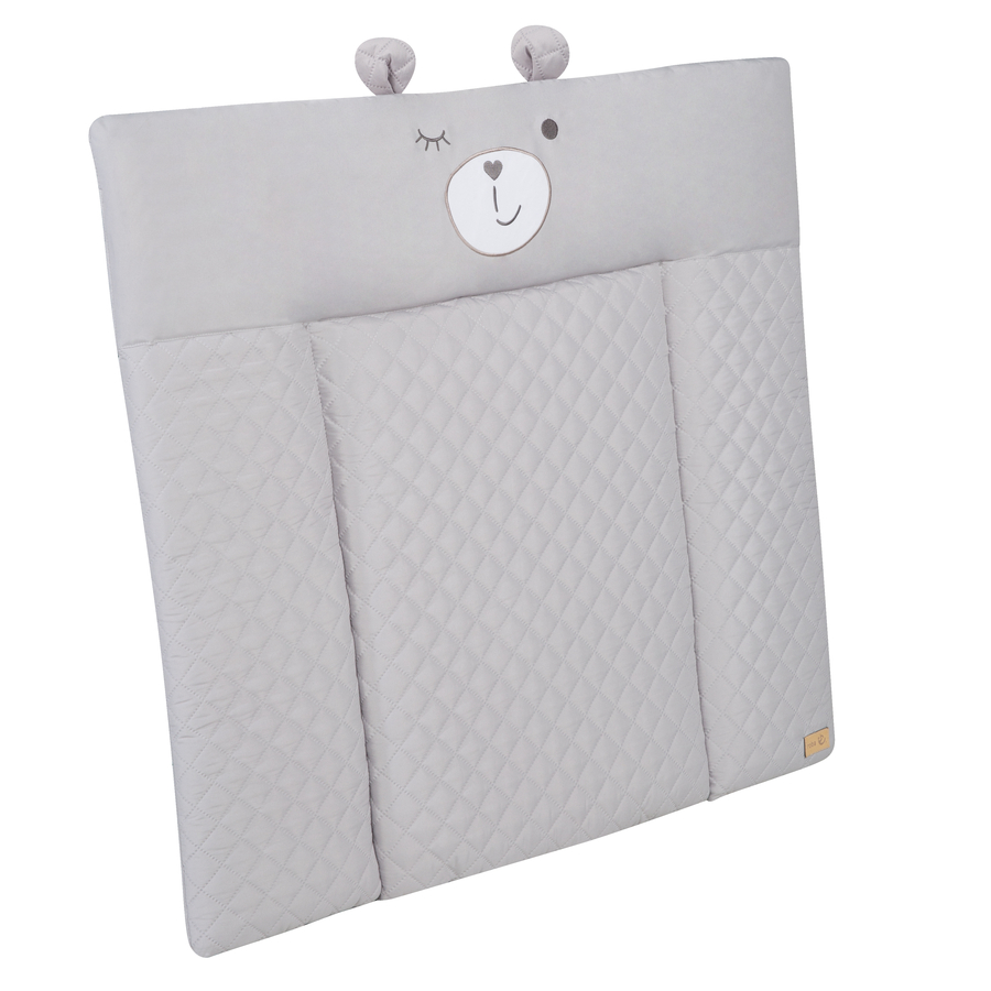 La superficie per il cambio roba nel moderno design roba style con il suo grazioso faccione da orso Sammy e due orecchiette garantisce sicurezza e protezione durante il cambio. Il fasciatoio è realizzato in misto cotone poliestere e un rivestimento in PU privo di ftalati ed è morbidamente imbottito in modo che il vostro bambino stia comodamente disteso. Il tessuto superficiale del materassino fasciatoio rivestito in PU è particolarmente adatto alla pelle delicata dei bambini. La serie roba style, moderna e di alta qualità, offre prodotti per bambini equipaggiati con tessuti in microfibra trapuntata di facile manutenzione. I prodotti Roba style convincono per il loro look trendy, che può essere integrato in qualsiasi soggiorno o cameretta, e per la loro piacevole sensazione di morbidezza. Tutti i materiali sono certificati e vengono regolarmente testati. La superficie può essere pulita facilmente. Dettagli del prodotto Utilizzabile su entrambi i lati, retro bianco Con simpatico motivo Bordo rialzato su 3 lati Le superfici sono lavabili e facili da pulire Dettagli tecnici: Colore: grigio Materiale imbottitura: 100 % Poliestere Tessuto esterno: Rivestito in PU Dimensioni: ca. 85 x 75 cm