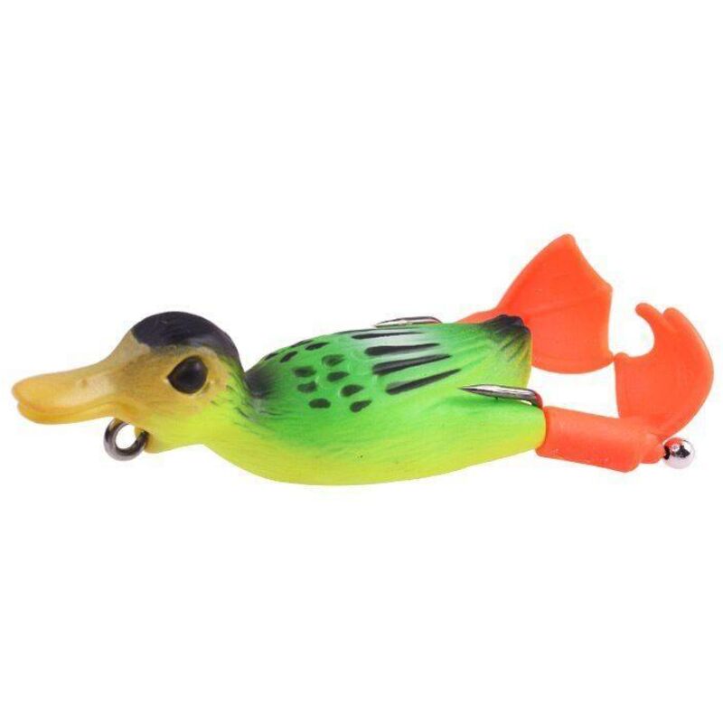 Il pascolo superficiale viene utilizzato sulla superficie dell'acqua e può essere confuso con i pesci predatori come una facile preda. Questo radente superficiale è realizzato in silicone e sembra una piccola anatra verde. L'esca pesa complessivamente 11,5 grammi ed è lunga 90 mm. - Esca di superficie in silicone - sembra un'anatra verde - pesa 11,5 grammi Specifiche: Colore: multicolore Materiale: silicone e metallo Lunghezza: 90 mm Peso: 11,5 g