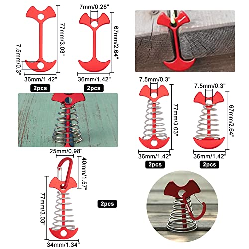 SUPERFINDINGS 10Pcs Picchetti di Ancoraggio per Ponti Rossi 5 Dimensioni Antivento in Lega di Alluminio a Lisca di Pesce Picchetti per Tende Deck Tie Down Anchor per Accessori da Campeggio