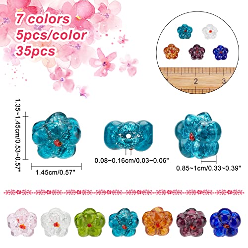 Design floreale: riceverai 35 pezzo di perline a lume fatte a mano a forma di fiore, dimensione di 13.5~14.5x14.5x8.5~10 mm, Foro: 0.8~1.6 mm, perline perfette per il proprio braccialetto di design, prendersi gioco, creazione di gioielli forniture