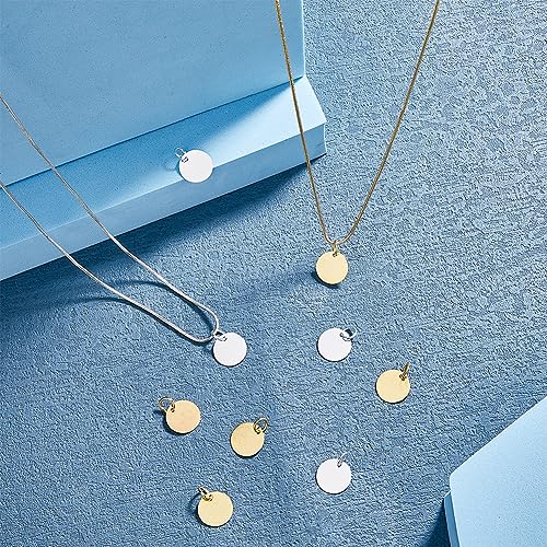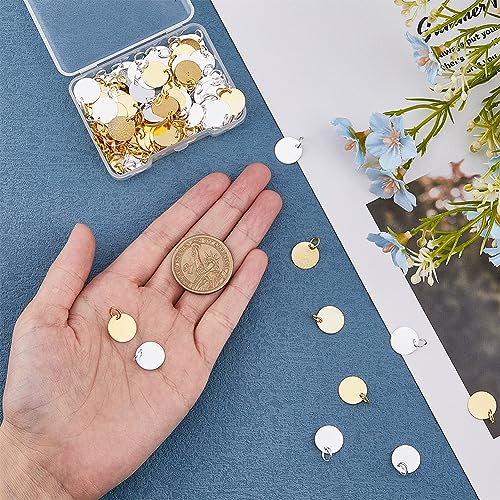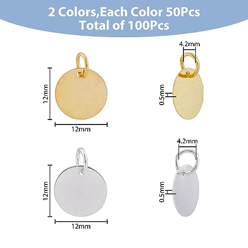 SUPERFINDINGS 100 pz 2 Colori 12mm Pendenti Rotondi Piatti Ciondoli in Ottone Dorato e Argento con Timbratura in Bianco per Creazione di Gioielli
