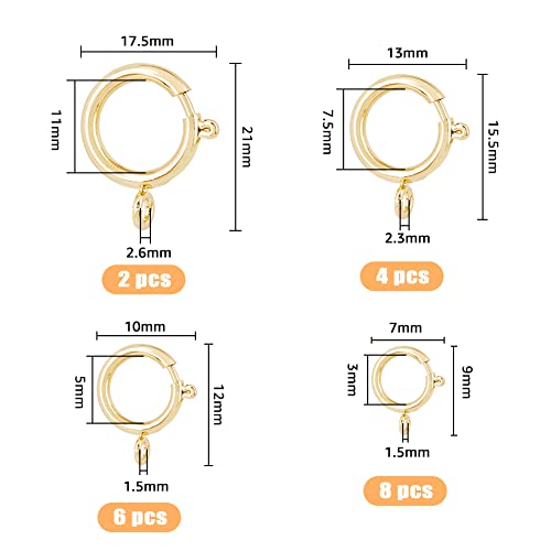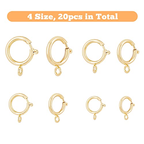 SUPERFINDINGS 20 pz 4 Misure Chiusure per Anelli A Molla Dorate Ottone Rotondo Chiusure per Gioielli Connettore Superficie Liscia Chiusura per Bracciale Aperto,Foro 1.5~2.6 mm