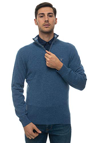 GANT SUPERFINE LAMBSWOOL HALF ZIP, Cardigan Uomo, Blu ( STONE BLUE MELANGE ), M