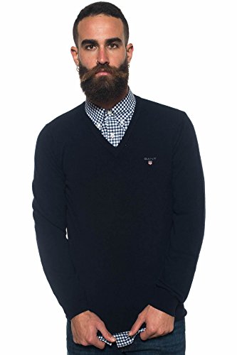 GANT Superfine Lambswool V-Neck Sweater Felpa, Blu (Marine), Large Uomo