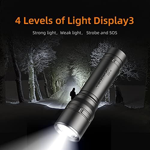 Materiale ABS e impermeabile: porta una lampada tascabile leggera e potente, distanza di illuminazione massima: circa 219 m. IP43, il che significa che la lampada tascabile può impedire gli schizzi d'acqua da ogni angolazione.