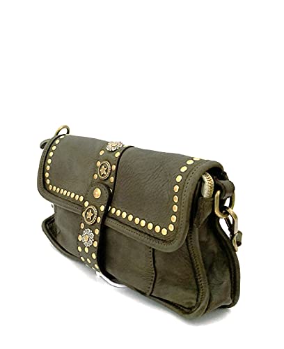 Superflybags Borsa A Spalla/Pochette In Vera Pelle Effetto Vintage con Borchie modello MINSK 22x13x3cm Made In Italy
