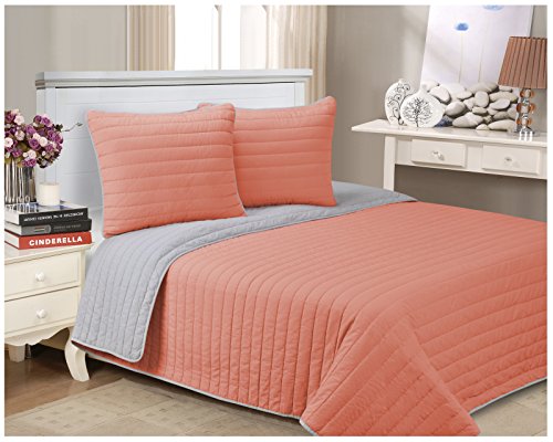 Superior - Set Trapunta a Righe, Brandon, 229 x 234 cm, Morbido, Cotone 100%, Rosa