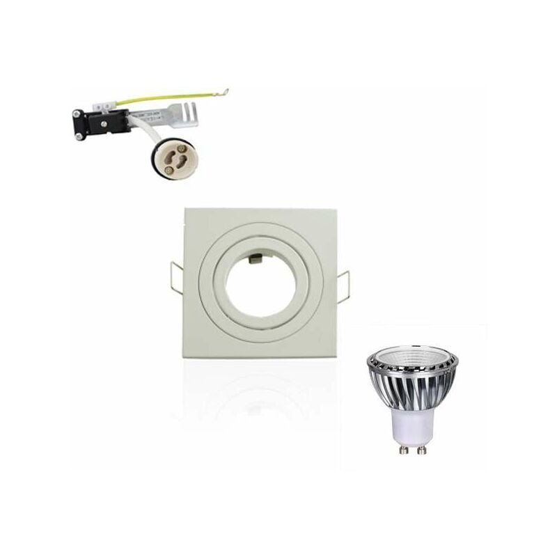 Kit spot LED GU10 piastrelle quadrate bianche da incasso. Questo kit all-in-one comprende: un supporto per spot da incasso quadrato con inclinazione bianca + una presa in ceramica GU10 + lampadina LED GU10 COB 5W 50W illuminazione. Luce bianca di giorno 6000K. Diametro Piercing 80mm, altezza 60mm, supporto bianco orientabile. 6000K 5W 50W 450 8 Kit spot LED GU10 tiglio 5W equivalente 50W Questo set comprende: un punto GU10 5W equivalente 50W angolo 80° e una potenza luminosa di 450 lumen. Il bulbo è associato a una presa in ceramica bianca GU10 che consente il collegamento diretto alla rete elettrica 220V un bianco quadrato incassato sostegno spot per incassare la lampadina nel soffitto. Consumo di watt: 5 W Materiale: Alluminio Indice di protezione IP: IP20 Colore: Bianco Modulo: Quadrato Attacco: GU10 Flusso luminoso (lumen): 450lm Angolo di illuminazione: 80° Durata di vita: 50000ore Watt equivalenti: 50 W Tipo di LED: PANNOCCHIA Diffusore: Trasparente IRC CRI: ≥80
