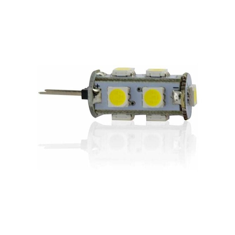 Lampadina LED G4 1.2W 15W illuminazione. Si collega ai G4 12 Volt. Ombrello chiaro - Bianco Neutral 4100K. trova l'altezza del perno di collegamento larga 26mm 13 mm. Illuminazione immediata, segno SuperLED. 4100K 1.2W 15W 140 360° G4 lampadina LED equivalente a 15 Watt Cap G4 - si adatta direttamente a tutti i connettori G4 Luce bianca calda 2700K 9 LED SMD 5050 Illuminazione a 360° Consumo ultra-basso: 1.3W Potenza luminosa equivalente a 15W Trova l'altezza del perno del connettore largo 13 mm 26mm Tensione di ingresso DC12V Adatto per lampade da ufficio G4 Lampada di garanzia 2 anni soggetto all'acquisto di un alimentatore 12V continuo. Consumo di watt: 1,2 W Modulo: Epi Attacco: G4 Flusso luminoso (lumen): 150lm Durata di vita: 30000 ore Watt equivalenti: 20 W Tipo di LED: SMD5050 IRC CRI: ≥80 Classe energetica: A+ Température de couleur (K): 4100K Altezza: Certificazione: CE e ROHS Colore della luce: Bianco naturale Diametro: 13 mm Dimmer per la regolazione