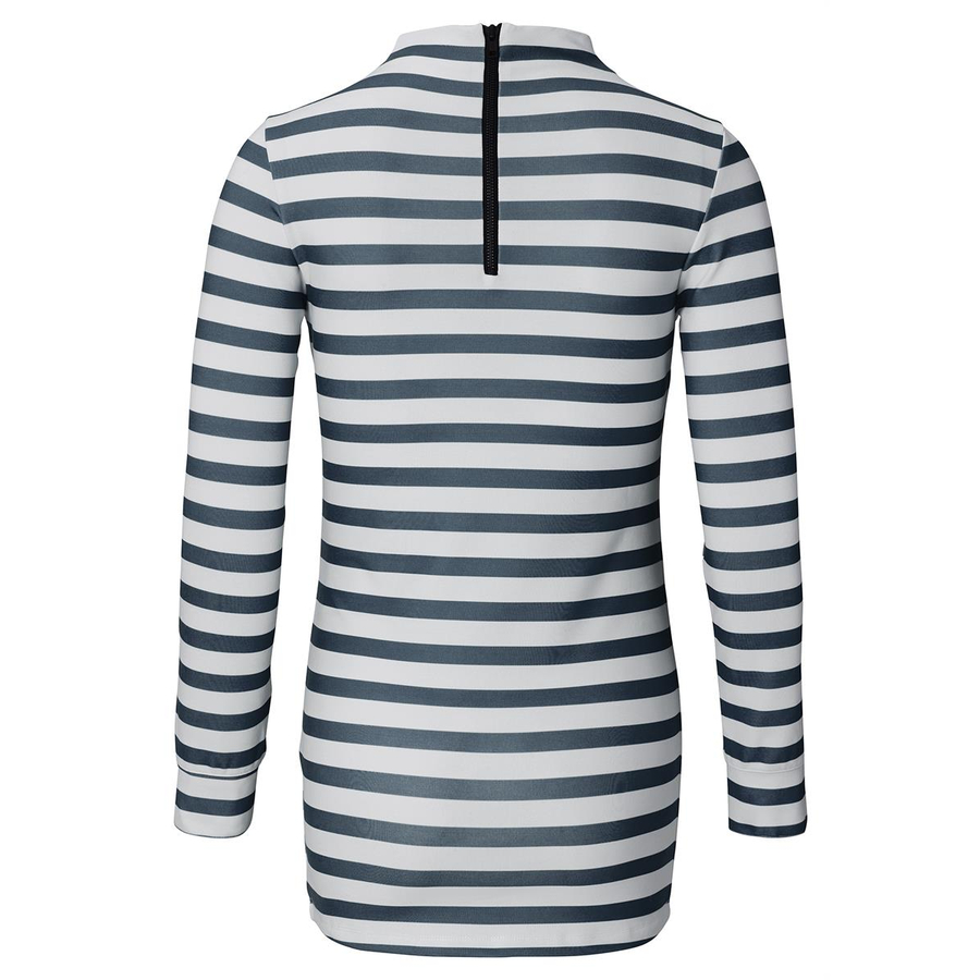 Con questa manica lunga Supermom, attira l'attenzione su di te stesso. Il modello più lungo è molto comodo grazie alla parte elastica e offre spazio sufficiente per la pancia in crescita. La manica lunga con colletto discreto ha un motivo a righe in un bel contrasto di colore e sul retro è inserita una pratica cerniera. I dettagli asimmetrici sui polsini completano il tutto in modo unico. Combina la maglia a righe con una gamba nera e completa lo stile con un comodo cardigan e stivali Chelsea. Dettagli del prodotto: Materiale: 100% poliestere Lavabile a 30 °C