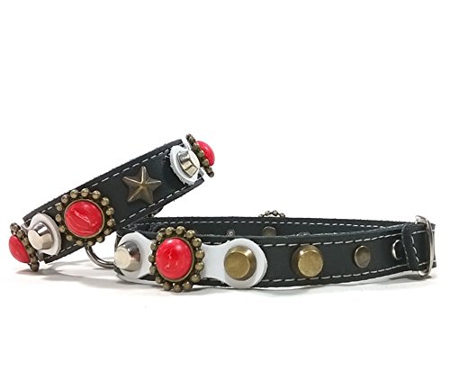 Superpipapo Set collare per cani con bracciale in pelle abbinato realizzato a mano tutte le dimensioni | Belle borchie di lusso nere bianche e pietre rosse