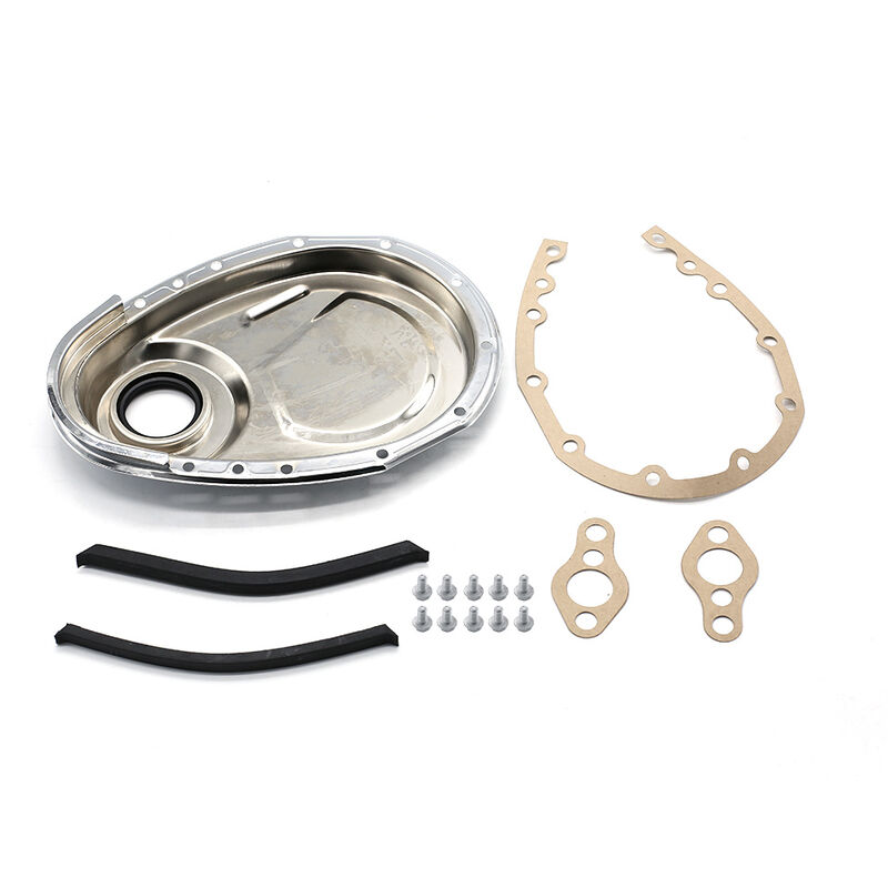 Caratteristiche: 100% nuovo di zecca. Realizzato in cromo di alta qualità, è resistente alla corrosione, ai graffi e ha una lunga durata. Include coperchio di distribuzione cromato, guarnizioni, guarnizione, bulloni cromati come nella foto. Misura per SB Chevy 283 327 305 350 383 400 MOTORI specifiche tecniche: Materiale: cromo Colori: argento Dimensione dell'imballaggio: circa 28,3 * 20,3 * 3 cm / 11,14 * 7,99 * 1,18 pollici Peso del pacchetto: circa 510 g / 18 once Elenco dei pacchetti: 1 * Kit coperchio catena distribuzione cromato