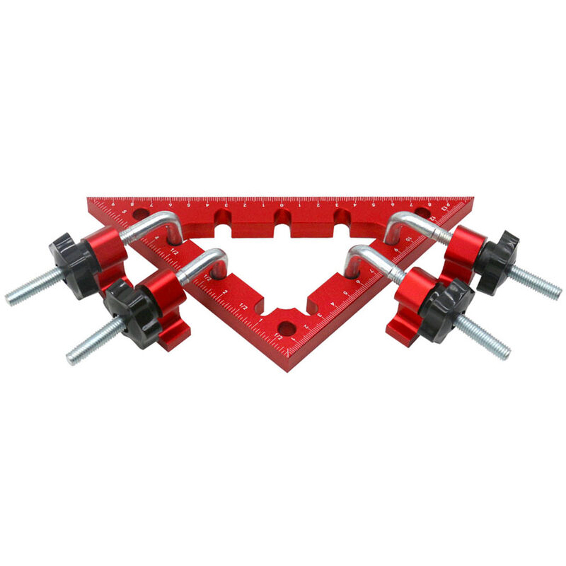 Caratteristiche: Morsetto ad angolo retto per la lavorazione del legno, materiale in lega di alluminio di alta qualità, con una buona durata, resistenza alla corrosione e non facile da arrugginire. Il righello è dotato di due unità di misura, metriche e imperiali, con scala di precisione, chiara e di facile lettura e facile da usare. Posiziona il quadrato di posizionamento a 45/90 gradi tra due pezzi di legno, può aiutarti a posizionarli e fissarli con precisione. Adatto per costruire scatole di legno, armadi, cornici, cassetti, ecc. Spessore massimo di serraggio: 60 mm. La consegna include un morsetto ad angolo retto e 4 pezzi di fissaggio. Dimensioni del prodotto: 150x150 mm/5,9x5,9 pollici. Specifiche: Colore rosso Materiale: lega di alluminio Angolo di serraggio: 45/90 gradi Massimo. Spessore di serraggio: 60 mm Dimensione articolo: 150 * 150 * 18 mm / 5,9 * 5,9 * 0,7 pollici Dimensioni confezione: 170 * 170 * 40 mm/ 6,7 * 6,7 * 1,6 pollici Peso della confezione: 830 g/1,8 libbre