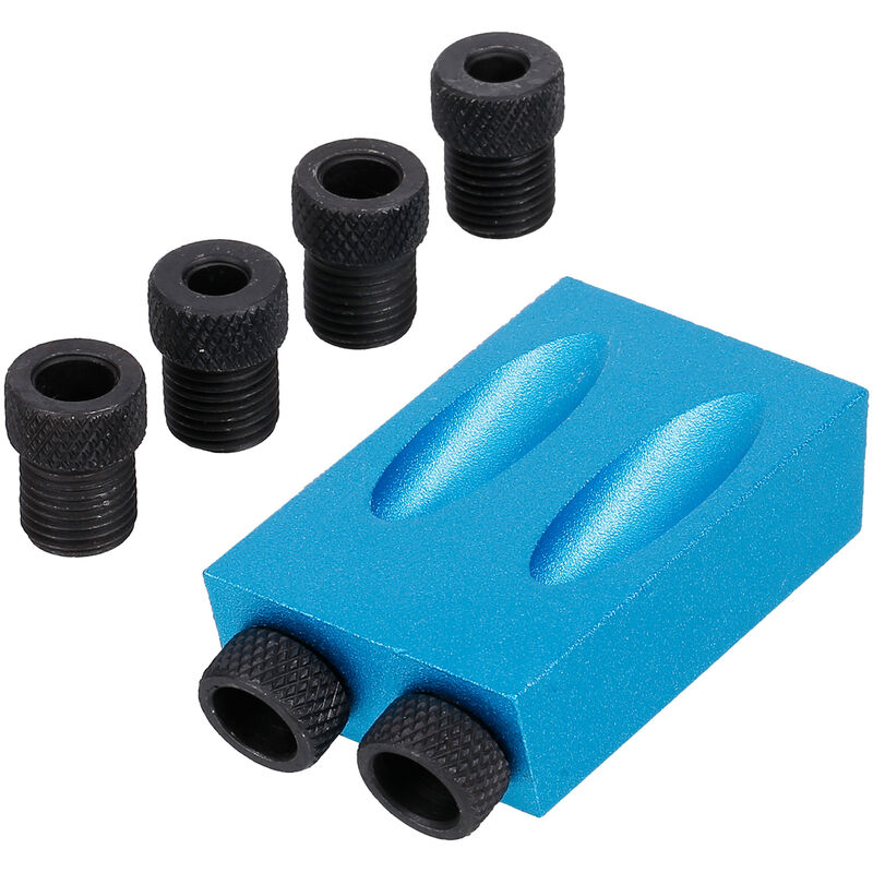 Questo kit di maschere per fori tascabili include 6 guida punte (6 mm / 8 mm / 10 mm) e 1 posizionatore. e perfetto per progetti domestici fai-da-te o per uso commerciale professionale e generale. Caratteristiche: Kit da 7 pezzi: contenente 1 posizionatore 6,7 * 3,8 * 1,8 cm e 3 guida punte (6 mm / 8 mm / 10 mm). Facile da usare: aiuta a forare rapidamente e facilmente per nascondere le viti nei mobili in legno. Strumenti fai da te per la lavorazione del legno e fori inclinati a 2 vie per un preciso collegamento a vite. Doppia tasca: doppia tasca 15 ° angolo di foratura, foro a 2 vie, che puo realizzare un collegamento a vite preciso e viti incorporate per realizzare l'invisibilita. Consentono di nascondere facilmente viti / elementi di fissaggio. 3 guide punte: sono disponibili tre tipi di scelta: 6 mm / 8 mm / 10 mm. Possono adattarsi facilmente a qualsiasi tipo di legno, posizione e angolo. Multiuso: il mini set tascabile e adatto per progetti domestici fai-da-te o scopi