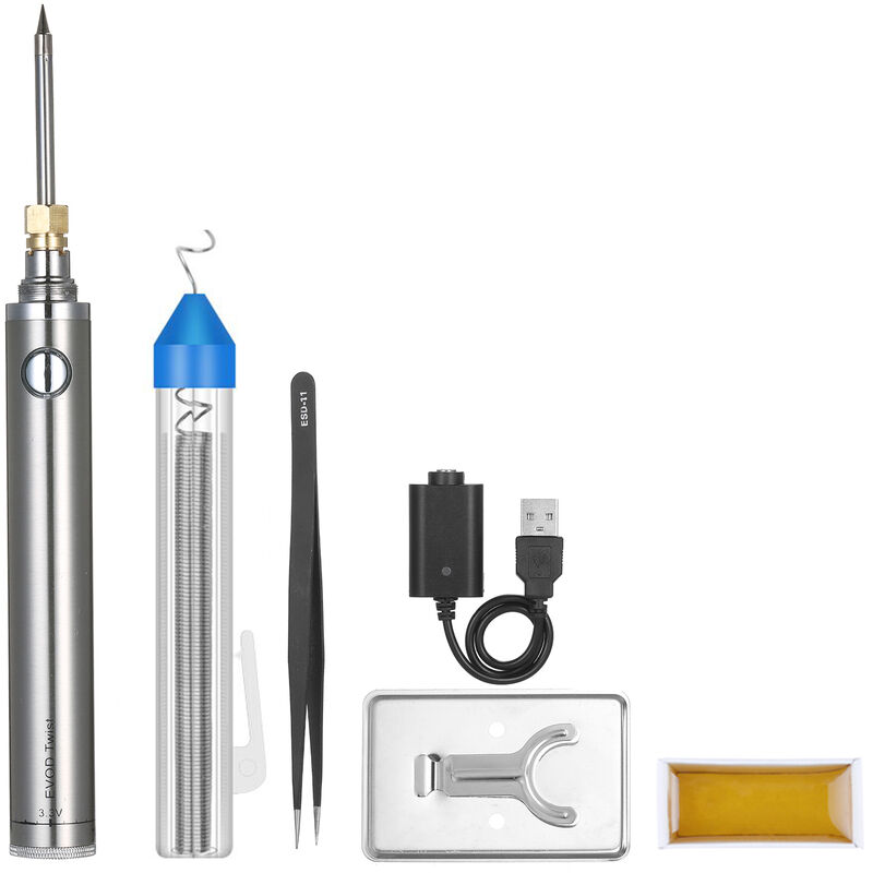 Caratteristiche: C'è una manopola in basso per regolare la tensione, la gamma regolabile è 3.3V-4.8V. Interfaccia del saldatore, può essere collegata con una punta del saldatore e una punta di ricarica. Punta per saldatore in lega di rame, rapido trasferimento di calore, rapido aumento della temperatura. Il pulsante di accensione ha una spia luminosa, premere il pulsante di accensione, la spia è accesa. Durante l'uso, la spia del pulsante lampeggia indica che la batteria è scarica. È necessario caricare. specifiche tecniche: Colore: Silver Materiale: Matal Dimensioni del saldatore: 115 mm / 4,52 pollici Lunghezza della punta del saldatore: 49mm / 0,35 pollici Formato del pacchetto : 20 * 13 * 3 cm / 7,87 * 5,11 * 1,18 pollici Peso del pacchetto : 230g / 8.11oz Elenco dei pacchetti : 1 * Carica saldatore 1 * filo metallico 1 * Saldatura del piede 1 * Testa di ricarica USB 1 * Cappuccio protettivo per saldatore 1 * Colofonia