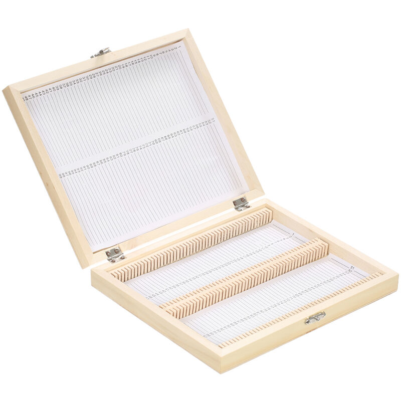 Contenitore in legno da 100 posti per tenere vetrini preparati al microscopio. Con slot numerati e foglio di contenuti per identificare le diapositive. Scelta perfetta! Caratteristiche: Contenitore in legno per tenere vetrini preparati al microscopio. Grande capacità: può contenere fino a 100 diapositive. Le fessure di dimensioni uguali possono contenere diapositive con uno spessore massimo di 2 mm. Coperchio incernierato con chiusura per una conservazione sicura. Slot numerati e foglio di contenuti per identificare facilmente le diapositive. Specifiche tecniche: Materiale: legno Formato dell'articolo: 22,5 * 19,5 * 3,5 cm / 8,8 * 7,7 * 1,4 pollici Formato del pacchetto: 22,5 * 19,5 * 3,5 cm / 8,8 * 7,7 * 1,4 pollici Peso del pacchetto: 277g / 9,8 once Lista del pacchetto: 1 * Scatola per diapositive in legno