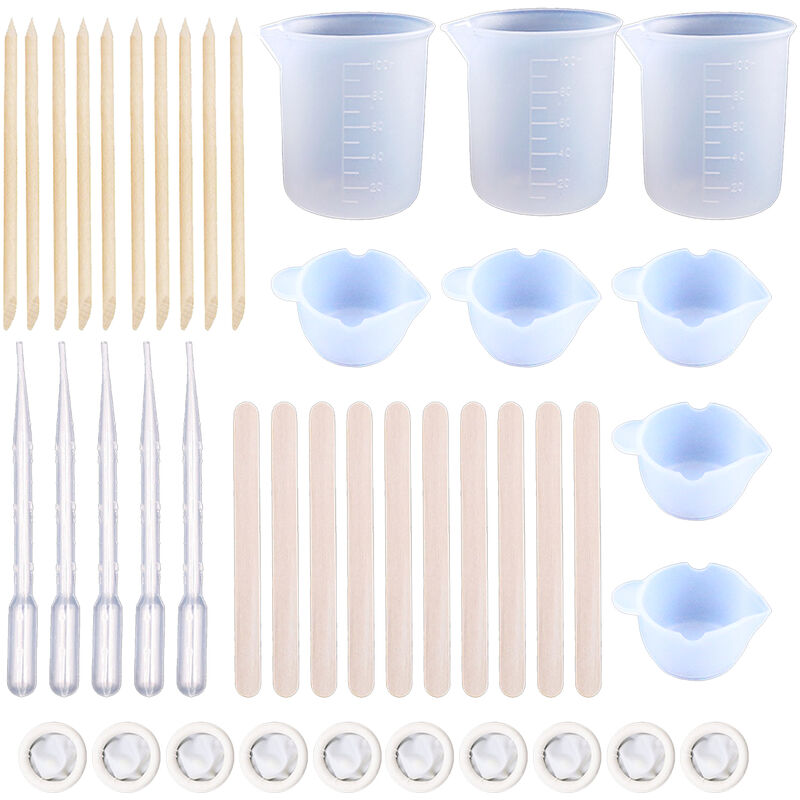 Descrizione: L'elenco dei prodotti include un misurino in silicone da 3 x 100 ml, 5 bicchieri per slot per schede, 10 aghi per agitazione in legno a doppio uso, 5 contagocce, 10 lettini per le dita, 10 bastoncini da neve. Caratteristiche: [Ampiamente applicabile] I kit di strumenti in resina fai-da-te sono ampie applicazioni, non solo per l'arte della colata di resina epossidica, ma sono adatti anche per macchie, creazione di gioielli, progetti di artigianato, ecc. [Strumento pratico] I misurini e gli stick di miscelazione sono strumenti ideali per mescolare facilmente e trasferire con precisione la resina. [Design umanizzato] I misurini sono realizzati in silicone, flessibili e resistenti, lisci e antiaderenti, con un design della porta di deviazione angolata, che facilita il versamento. [Alta qualità] La superficie dei misurini in resina è liscia, non appiccicosa e facile da pulire. [Utili lettini per dita] 10 pezzi di lettini per dita per mantenere i liquidi contaminati dalla