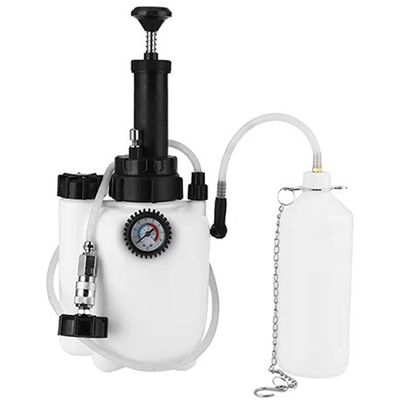 Questo strumento di sostituzione manuale dell'olio dei freni per auto è facile da usare, il funzionamento manuale consente una rimozione e sostituzione del liquido dei freni facile ed efficiente. Design del quadrante a doppia scala, specchio in plexiglass, lettura chiara e precisa, con intervalli di misurazione di 0-85PSI (0-6 kg). Adatto per coperchio caraffa freno connettore E20 (ad es. diametro interno 45,5 mm). Strumento di sostituzione della brocca del liquido dei freni da 3 litri, semplice e pratico, adatto per riparazioni auto, manutenzione auto, modifica auto. Caratteristiche: Facile da usare, il funzionamento manuale consente la rimozione e la sostituzione del liquido dei freni facile ed efficiente. Design del quadrante a doppia scala, specchio in plexiglass, lettura chiara e precisa, con intervalli di misurazione di 0-85PSI (0-6 kg). Il misuratore è protetto da una copertura in gomma, che è a prova di caduta e antigraffio per garantire l'uso in sicurezza. Barile addensato