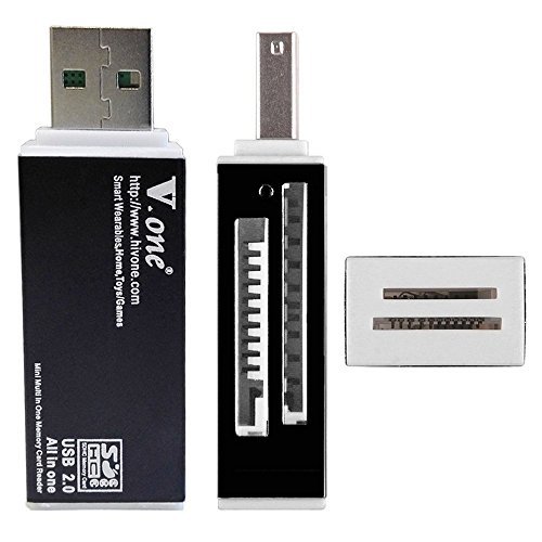 V.one Superspeed - Adattatore per lettore di schede USB 2.0 Superspeed in alluminio 4 slot USB 2.0, supporto per schede D/SDHC, MMC/RS MMC, TF/MicroSD, MS/MS PRO/MS DUO, M2 (multicolori)