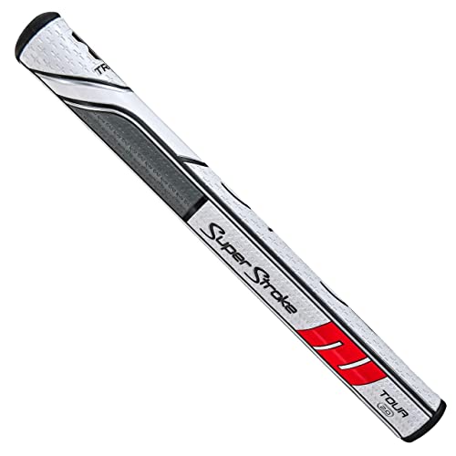 SuperStroke Super Stroke, Traxion Tour 2.0-Impugnatura per Putter da Golf, Colore Unisex-Adulto, Bianco/Grigio/Rosso, 2