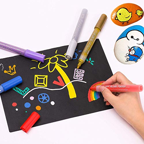 REGALO PERFETTO PER TUTTI - Questi pennarelli per pennarelli acrilici sono caratterizzati da robusto barilotto di penna e punta in fibra sintetica fine, resistenti e pratici pennarelli per artisti, studenti d'arte, adolescenti e adulti da utilizzare su progetti di arte e artigianato.