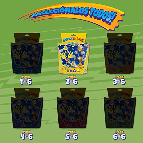 SUPERTHINGS serie Neon Power - Confezione da 6 pezzi con 4 SuperThings (1 capitano d'argento) e 2 esoscheletri. Confezione da 2 da 6