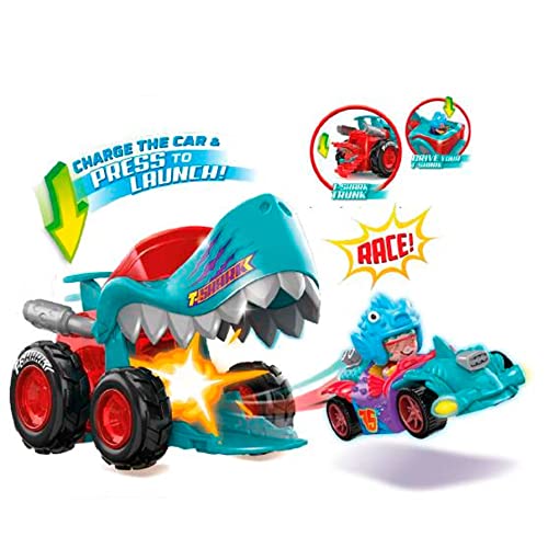 SuperThings- T-Racers S-Launcher Mega Wheels. 2 Modelli Assortiti (T-Shark e T-Rex) +1 Veicolo+1 Pilota eslusivo+1 Accessorio, PTRSP116IN00