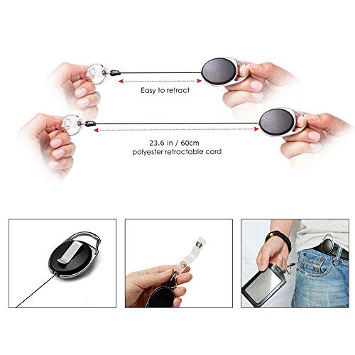 Design unico: viene fornito con portachiavi e fibbia in plastica, la bobina retrattile è così facile da agganciare il badge e il set di carte d'identità, offrendo un modo semplice per rendere la vita comoda.
