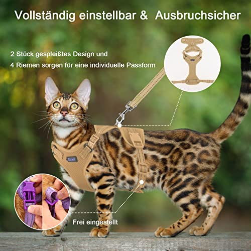 Supet Set di stoviglie per gatti e guinzaglio per gatti a prova di fuga, pettorina regolabile con strisce riflettenti, guinzaglio e pettorina universale per gatti e cuccioli