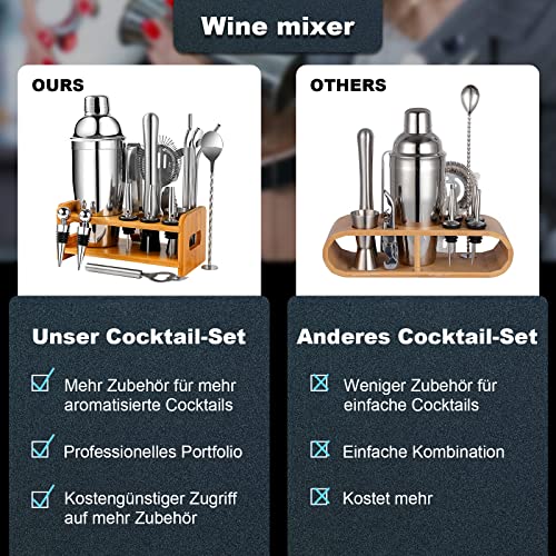 SUPHOOK SUPHOME - Set da cocktail da 19 pezzi, 750 ml, shaker da cocktail in acciaio inox, set di attrezzi da bar, con ricettario, set di accessori da bar con colino
