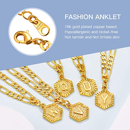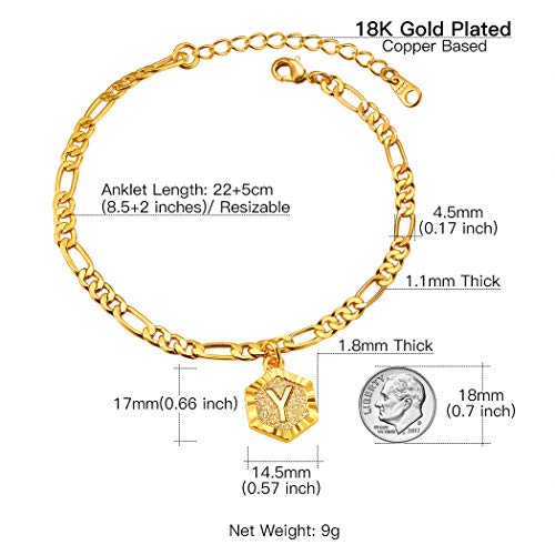 Suplight Cavigliera Donna Resistente Acqua Cavigliera con Lettera Y Oro Cavigliera Donna Semplice 22+5 cm Catena Regolabile