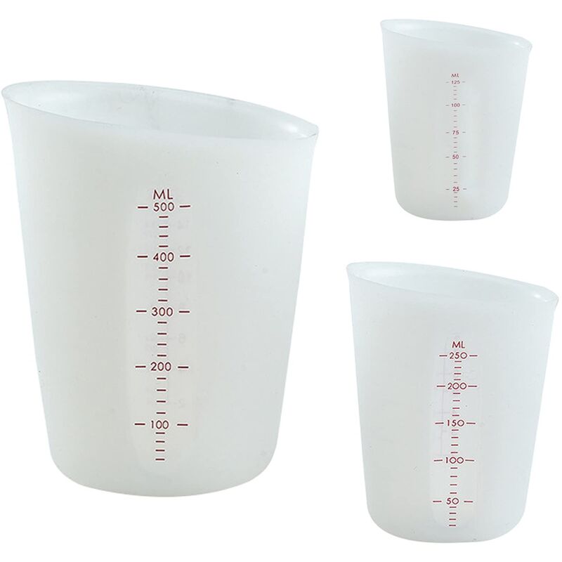Cutefly, 3 misurini, misurini in silicone per misurare liquidi, resistenti alle alte temperature, tengono in mano, stampi in resina epossidica, 125 ml, 250 ml, 500 ml