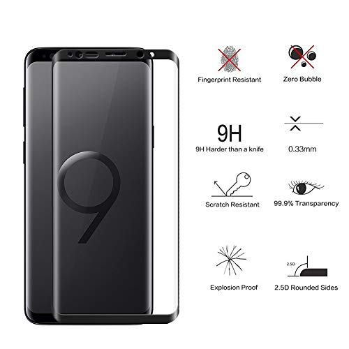 Supone Vetro temperato Samsung Galaxy S9, [Confezione da 2] Copertura Completa HD Pellicola Proteggi Schermo - 9H Durezza - Senza Bolle d' Aria - per Samsung Galaxy S9 (Nero)