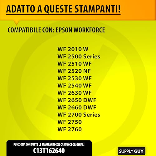 Supply Guy 5 XL cartucce compatibile con Epson 16XL per WorkForce WF2010 WF2500 WF2510 WF2520 WF2530 WF2540 WF2630 WF2650 WF2660 WF2700 WF2750 WF2760