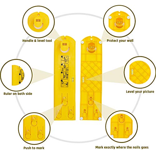 Ottieni le tue immagini perfettamente allineate: il kit di strumenti per appendere quadri con strumento di livello consente di allineare le immagini con una precisione al 100%, rendendo facile da appendere più cornici per quadri. Perfetto per opere d'arte, cornici per foto piccole e grandi, specchi da appendere, orologi e accessori.