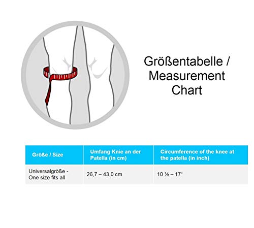 La resistente benda professionale a rotula è composta al 70% da policloroprene di alta qualità (neoprene). Il neoprene è uno speciale materiale antibatterico che assorbe l'umidità (sudore) dall'interno e mantiene la pelle asciutta. Allo stesso tempo, il materiale permeabile all'aria immagazzina il calore generato nella benda. Grazie al sistema di chiusura in velcro, la fasciatura può essere adattata individualmente al singolo ginocchio.