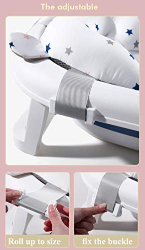 Cresci con il tuo bambino: con cintura laterale regolabile e chiusura a fibbia, facile da usare, cresce con il bambino, adatto per bambini da 0 a 12 mesi, si adatta alla maggior parte delle vasche da bagno rettangolari, fornendo comfort e supporto extra contro la vasca di plastica