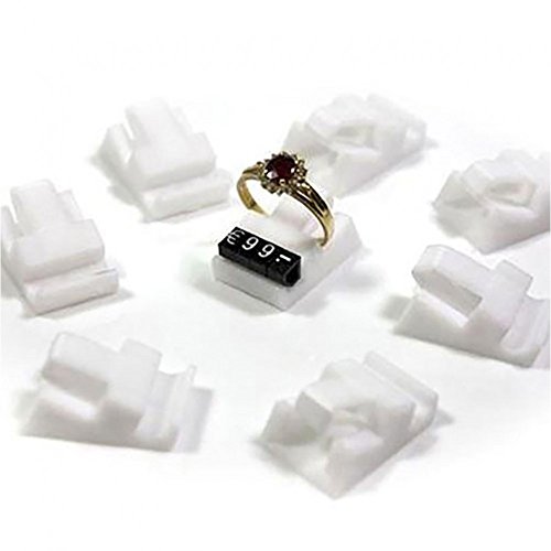 Questo supporto anello propone una linguetta per tenere il gioiello e una scanalatura inferiore per visualizzare il prezzo del gioiello. Dimensione di ogni mini plot: 1,8 cm di altezza e 2,5 cm di profondità. L' etichetta prezzo gioielli non viene fornita con.