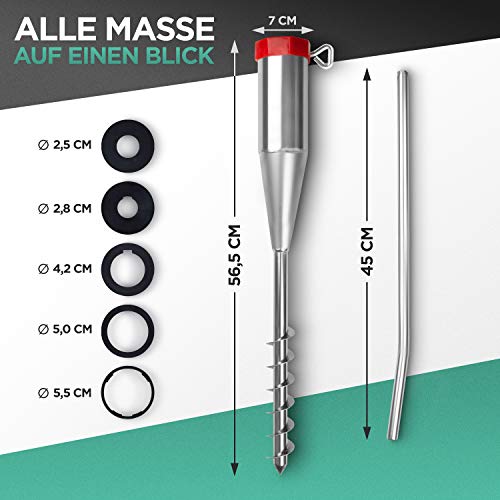 Contenuto della confezione: 4 picchetti da 57 cm di lunghezza, 1,3 kg di peso ciascuno, con 5 adattatori per tubi con diametro di 25-60 mm, materiale: metallo