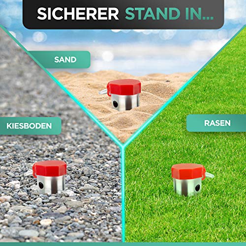 Facile da inserire nel terreno con l'asta di bloccaggio: picchetto per una posizione stabile sul prato o sulla sabbia.