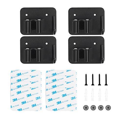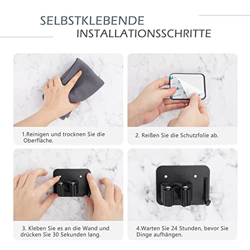 4 supporti per scopa da parete, in acciaio inox, con gancio, autoadesivo, porta attrezzi da giardino, organizer per casa, cucina, bagno, garage, giardino (nero)